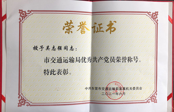 吳志強榮獲”市交通運輸局優(yōu)秀共產黨員“榮...
